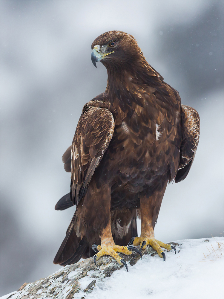 Er ist das große Kaliber für den Falkner. Ab Hase aufwärts reicht das Beutespektrum, über Fuchs bis zum Reh, nichts ist dem unbestrittenen König der Lüfte zu kräftig. Seine Unerschrockenheit, Kraft und Geschwindigkeit machen sich die Mongolen für die Wolfsjagd zunutze. Aufgrund seines Gewichts muß der Falkner einiges an Erfahrung besitzen, um ihn in der richtigen Jagdkondition zu halten.